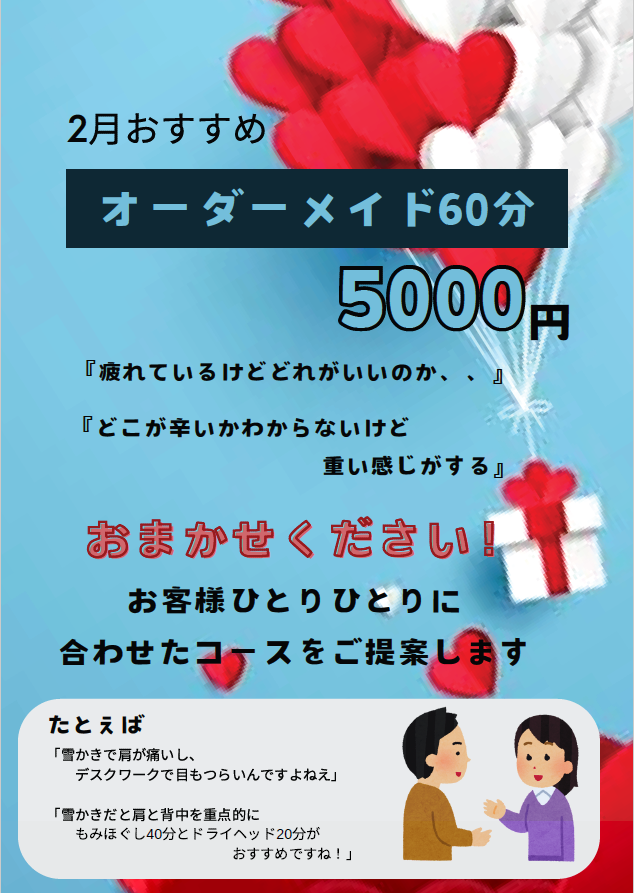 【ご褒びの部屋】2月のおすすめメニュー