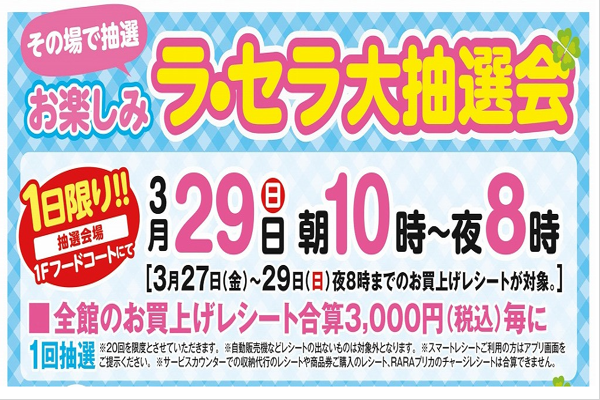 【イベント】3/29(日)はお楽しみラ・セラ大抽選会!