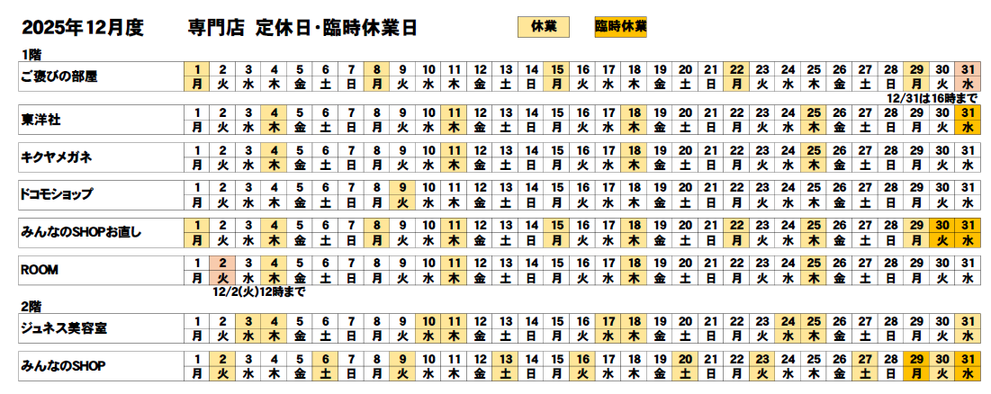 ご来店の際は下記カレンダーにて営業日をお確かめの上、ご来店いただきますようお願い申し上げます。