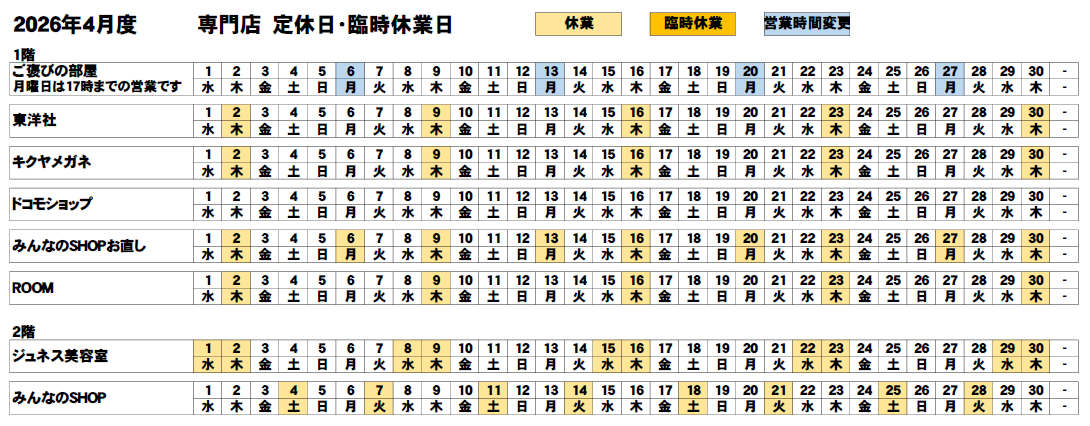 ご来店の際は下記カレンダーにて営業日をお確かめの上、ご来店いただきますようお願い申し上げます。